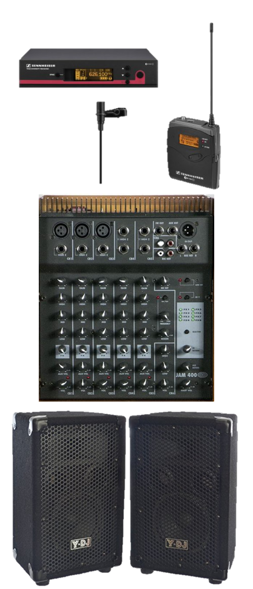 Professional and permanent venues are usually equipped with professional equipment such as top quality Microphones you won’t even find on Amazon. Sennheiser, Shure, Audio Technika and the like, with price for a 2 mic + 1 dual channel receiver probably well above £500/$550, like the Sennheiser EW 100 G4-ME2. The audio from those device is great, but the setup more complicated for non-professional recording and you’ll need extra equipment.